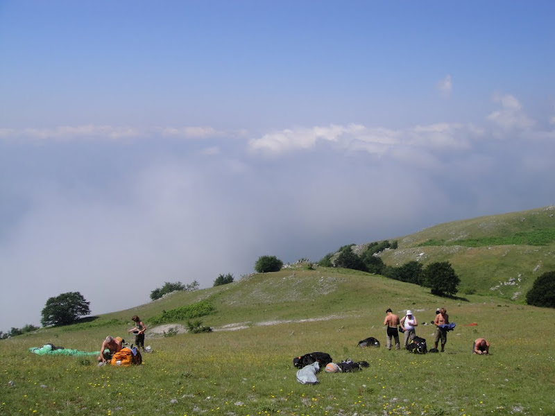 Nous sommes sur un déco SO à 1250m d’altitude face à la plaine de San Potito. Les plafonds sont annoncés à 1700m mais l’homme météo pense que cela ne dépassera pas 1400m, avec un risque d’orage localisé à 50%. Comme à 13h00 nous sommes toujours dans la brumasse, la manche prévue en plaine est annulée, journée de vol libre pour tout le monde (sous notre entière responsabilité nous est-il précisé).